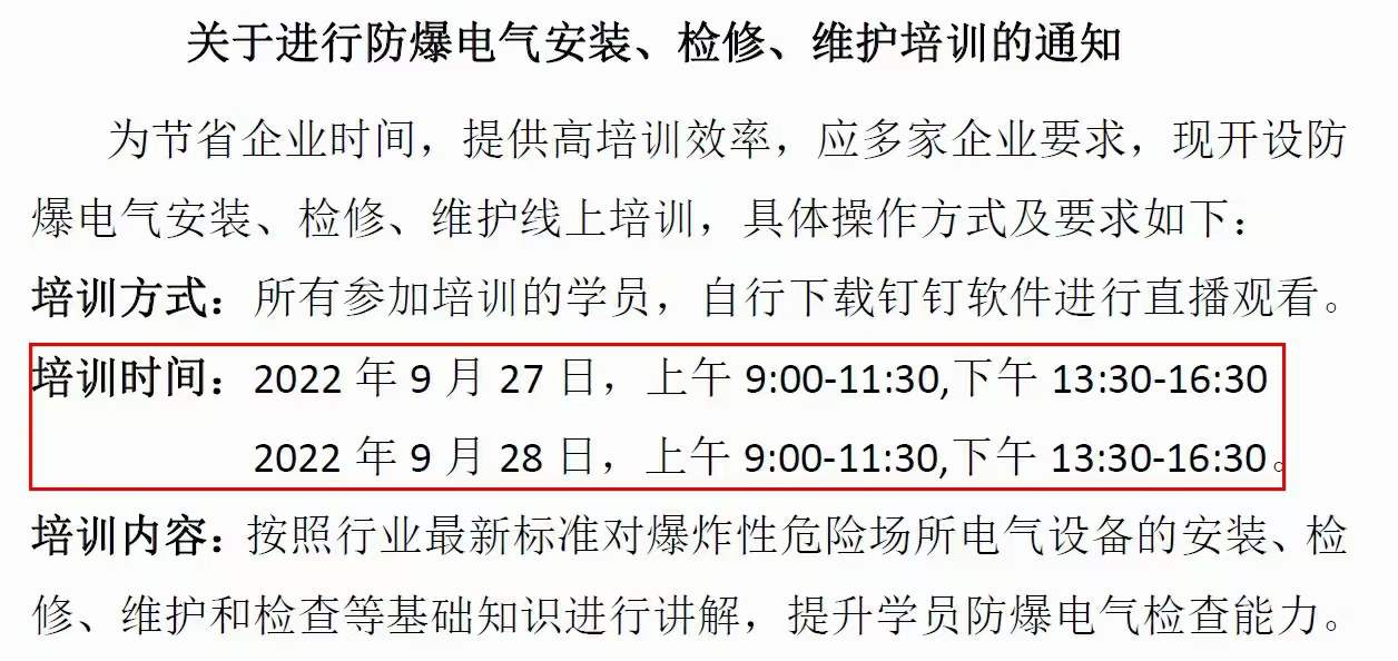 9月防爆電氣設備安裝檢修維護技術培訓證書通知