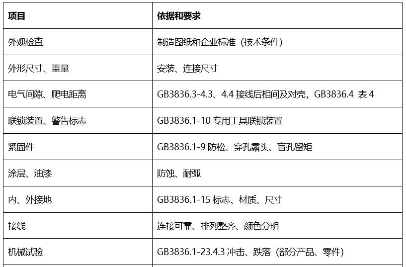 Note: The general test items listed in this table are applicable to explosion-proof, increased safety, intrinsic safety, and general mining electrical equipment. There may be differences according to the actual situation of the product.