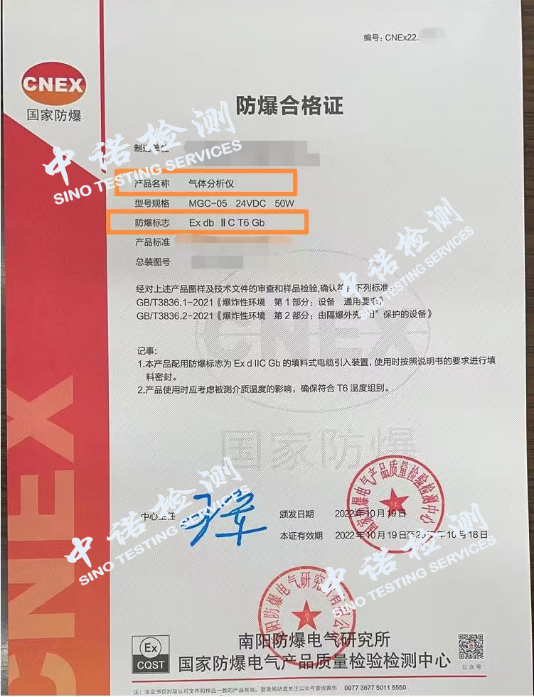 Process and standards for obtaining explosion-proof certificate for gas analyzer
