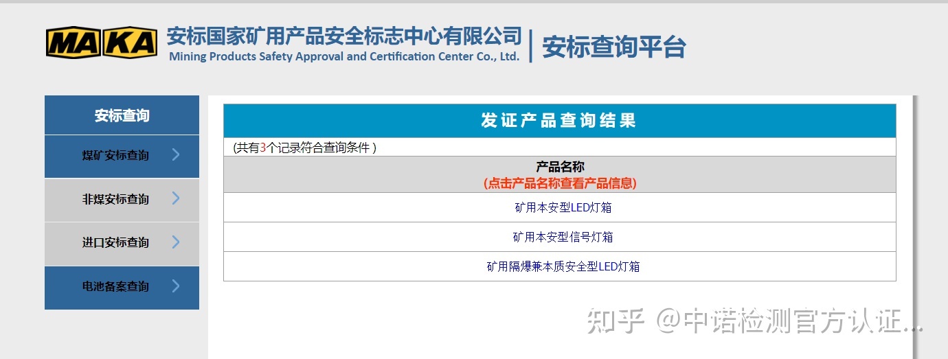 用戶只要輸入企業(yè)名稱或者安標(biāo)編號(hào)、產(chǎn)品名稱、型號(hào)任意一個(gè),都可以查詢到對(duì)應(yīng)的安標(biāo)企業(yè)和產(chǎn)品。如果用戶是要查詢某種安標(biāo)產(chǎn)品,比如具有煤安認(rèn)證的燈箱,那可以在煤礦安標(biāo)查詢這欄的產(chǎn)品名稱輸入產(chǎn)品名稱關(guān)鍵字“燈箱”,就會(huì)跳出有做過(guò)煤安認(rèn)證的有效期內(nèi)產(chǎn)品名稱帶有燈箱的產(chǎn)品目錄,用戶只需要點(diǎn)開(kāi)細(xì)看就可以查找所需要的產(chǎn)品了。